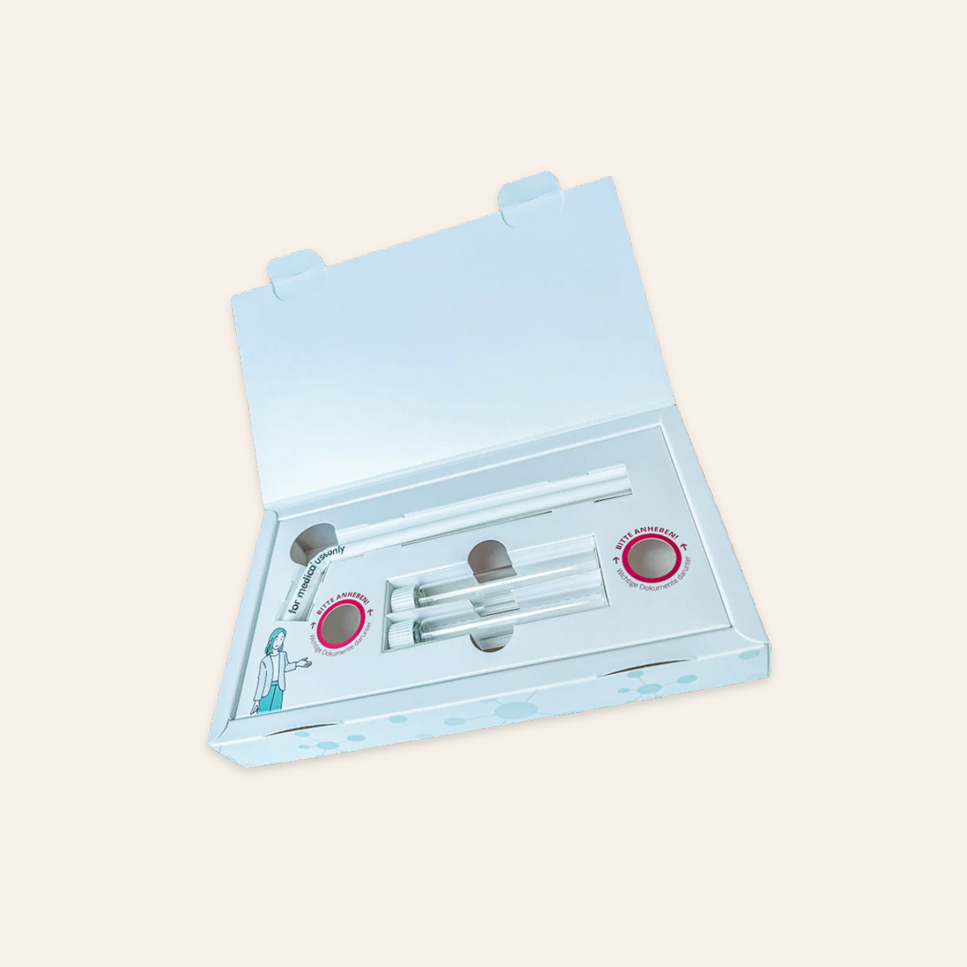 - Vorfrankierter Rückversandumschlag, Testanleitung und weiteres Informationsmaterial