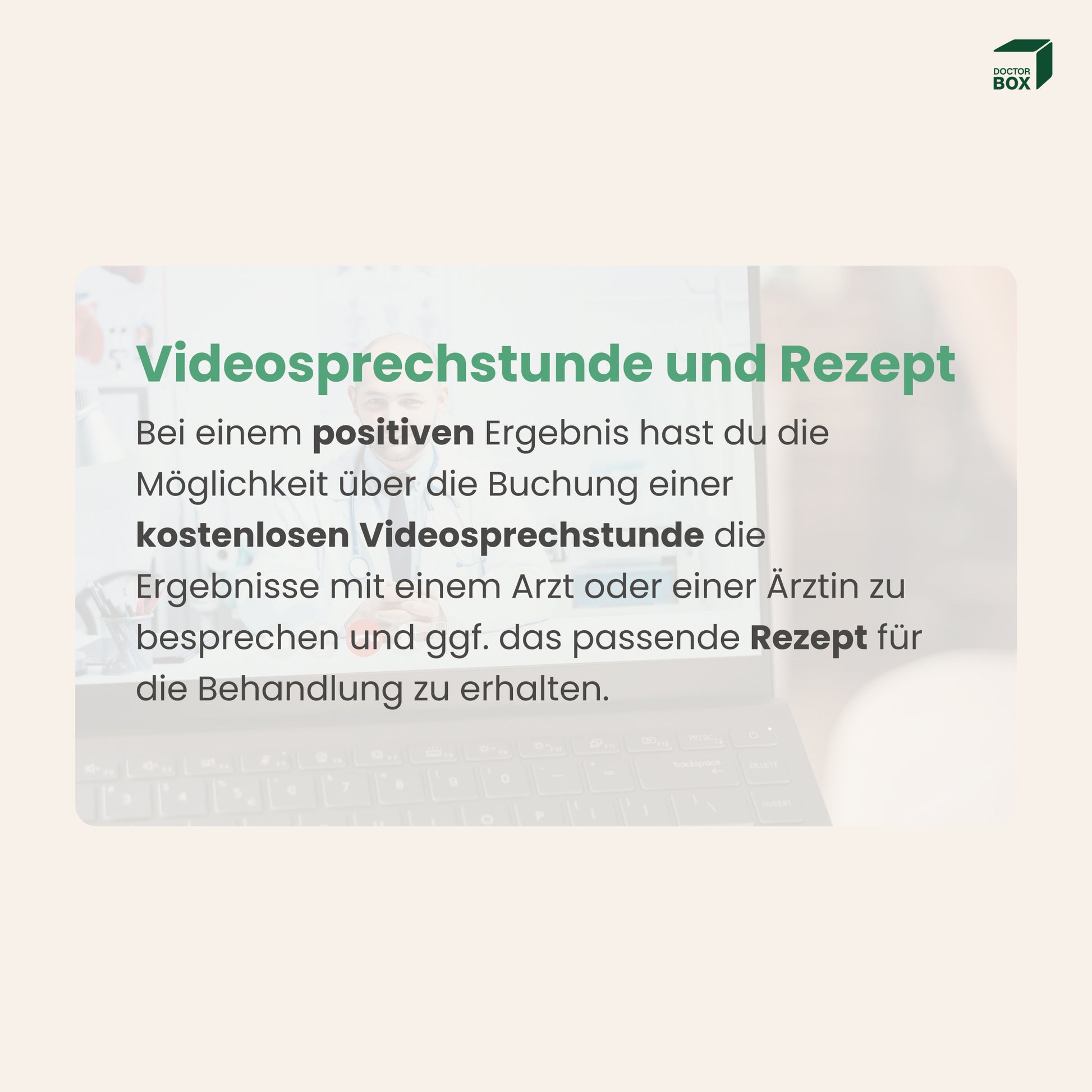After three to seven days, you will receive your results in your DoctorBox app. Note: Pay attention to the timing when taking the sample.