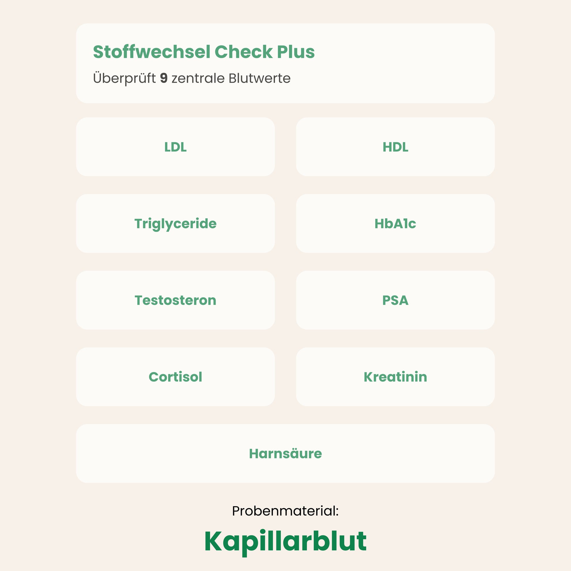 So kannst du frühzeitig mögliche Risiken erkennen und deine Gesundheit gezielt im Blick behalten – von Blutfetten und Zuckerstoffwechsel bis hin zu Hormonen und Nierenfunktion.