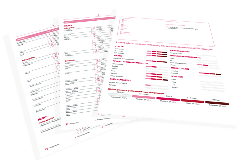 The results are clearly visualized and presented in a way that’s easy to understand, even without medical knowledge. You can instantly see how strongly your body reacts to each individual allergen—supplemented with helpful additional information and explanations.