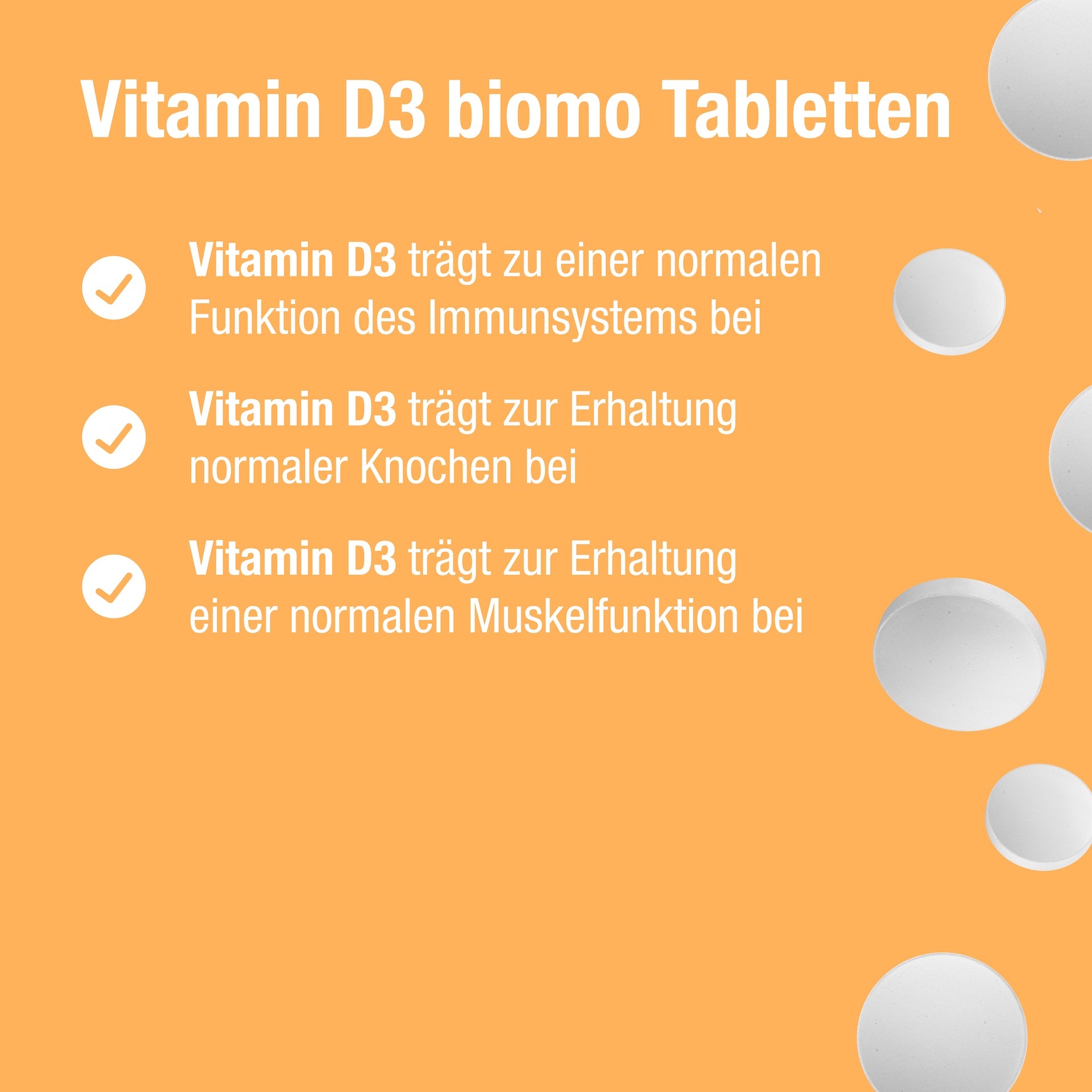 Vitamin D3 is essential for a wide range of functions in your body. Our Vitamin D3 biomo® 2,000 IU supports:
