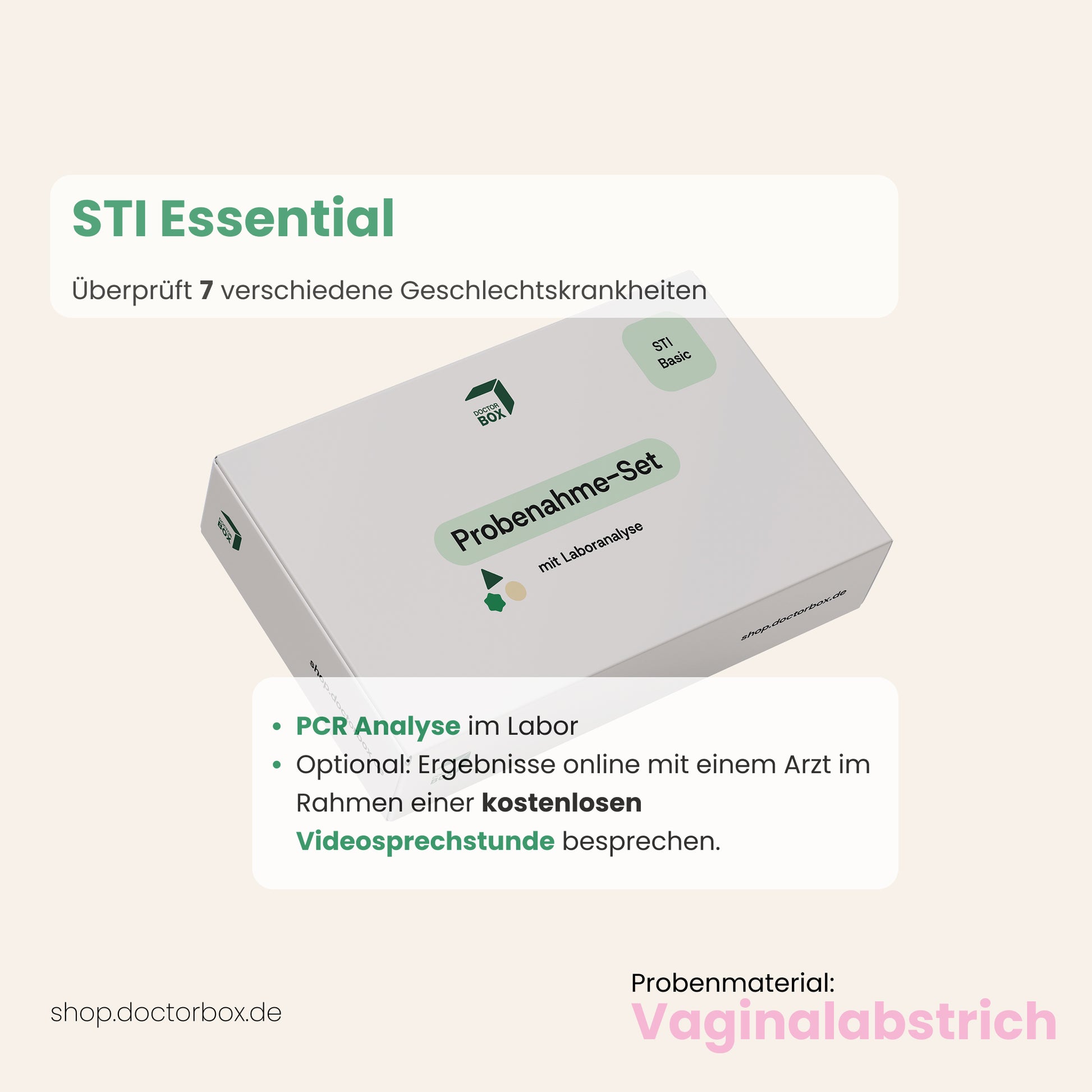 - Früherkennung: Die meisten STIs können ohne Behandlung schwerwiegende gesundheitliche Probleme verursachen. Der STI-Essential kann dazu beitragen STIs frühzeitig zu erkennen, bevor es zu ernsthaften Komplikationen kommt.